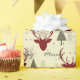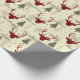 Ein beiges, rotes und grünes Gemustertes Weihnachtswackelpapier mit grünen Bäumen und roten Hirschköpfen