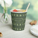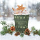 Dieser Papierbecher weist ein Muster stilisierter Weihnachtsbäume und Schneeflocken in hellgrün auf einem dunkleren moosgrünen Hintergrund. Der optionale Text 'Happy Holidays' und ein Label wurden bereitgestellt, um Ihren Namen und/oder anderen Text hinzuzufügen. Suchen Sie ID861 durch ID864, um weitere Farboptionen und andere Produkte in diesem modernen, weihnachtlichen Design-Set zu sehen.
