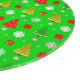 Farbenvolles Urlaubsdesign mit Weihnachtsbäumen, Schneeflocken und Geschenken auf einem lebendigen grünen Hintergrund. Ideal für saisonale Designs, Geschenkpackungen und festliche Projekte.