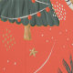 Dieses farbenfrohe Weihnachtsbaummuster im Stil eines Cartoon hat einen anpassbaren orangefarbenen Hintergrund. Weihnachten, Bäume, Weihnachtstiere und andere Weihnachtssymbole.