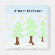 Weiche grüne Weihnachtsbäume mit blauen Kugeln und schneebedecktem Boden. Eine nette Botschaft von "Winter Welcome"