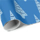 Weihnachtsgeschenkpapier mit blauem Hintergrund und festlichem Weihnachtsbäumprint. Passen Sie dieses Papier an oder kaufen Sie, wie es ist.