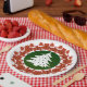 Weihnachtsbaumessen in Rot und Grün Pappteller