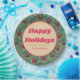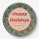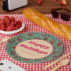 Niedliche Rentiere in roten Bögen mit Heiligenschein und Schnee auf einem waldgrünen Hintergrund