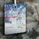 Weihnachts Metal Square Ornament mit Schneemännern auf blauem Hintergrund. Winterbaum und Schneeflocke.