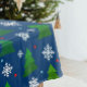Weihnachtsbaumwald, Schneeflocken und roter blauer Tischdecke