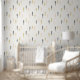 Dieses niedliche Design zeichnet sich durch ein in Gold, Rosa und Schwarz gezeichnetes Waldmuster aus.