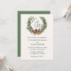 Aquarellbild Weihnachtskranz mit roten Beeren, Kiefern, Kiefern, Mistelen und Schlittenglocken. Laden Sie Familie und Freunde zu Ihrer Winterhochzeit ein. Auf der Rückseite der Einladung können Sie ein Foto hinzufügen.