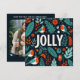 Individuell gestaltbares, gemütliches Urlaubsdesign mit der Phrase "Frohe Weihnachten aus der Johnson-Familie" können Sie ändern. Minimalistisches Urlaubskartendesign mit skandinavisch-inspiriertem Thema. Die Karte zeichnet sich durch eine schlichte grüne und rote Farbpalette aus, mit aufwändigen, stilisierten Abbildungen von Heilbeeren und abstrakten Pflanze, die in einem harmonischen und ausgewogenen Layout rund um eine zentrale Textbox angeordnet sind. Die zentrale Kiste hat einen sauberen, modernen Schriftart mit der Botschaft "Jolly" Das Design erinnert an ein natürliches, festliches Ambiente mit eleganten, handgezeichnet Details, die eine moderne, aber zeitlose Ästhetik erfassen. Ändern Sie das Foto auf der Rückseite und den Text und machen Sie es zu Ihrem!