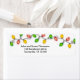 Helle Weihnachtsleuchten in Rot, Grün und Gelb lagen oben auf dem Etikett. Ihr Glanz reflektiert auf dem weißen Hintergrund. Eine tolle Rendite für die Ferien.