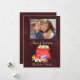 Maroon Hintergrund mit der Tasche des Weihnachtsmanns voll mit Spielzeug. Fügen Sie ein horizontales Foto hinzu, und passen Sie den Text an.