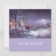 Weihnachtsbildern Party Einladungen aus der Firma oder der Familie. Elegant, klassisch und einladend, perfekt für Ihre Feierlichkeiten. Eine friedliche Winterschneestrasse mit Leuten, Kindern, Pferden, Schneemann und Straßenlaternen vor einem warmen Familienhaus.
