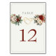 Führe die Gäste mit dieser eleganten Weihnachtshochzeit-Tischnummer in festlichem Stil zu ihren Sitzplätzen. Rote und Elfenbeinfloralen, Wintergrün und ein goldenes Seilherz auf Elfenbeinhintergrund verleihen Ihrem saisonalen Empfang Wärme und Charme.