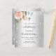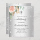Ein silberfarbener Hintergrund mit Eukalyptusgrün, eine Rose aus Rose, Gold und Rosa, goldene Blätter und Imitate, die silber Glitzer fällt. Ein Silberkreuz. Personalisieren und die Kinder Name und Zeremonie Details.