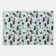 Niedliche Border Collie Hunde in festlichen Ferienhäusern mit Weihnachtsmannmützen, Antlers, Lichterketten und Polka Dot und Raute Pullover auf blauem Hintergrund mit verstreuten Ornamenten.