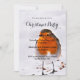 Ein traditionelles Winter- und Weihnachtsthema. Ein niedlicher Robin, der in einen Garten kommt, Hinterhof für die Sonnenblumenkerne, die im Schnee liegen. Weißer Hintergrund (Schnee) Farben der Natur: orange, braun und weiß. Vorlagen für Ihre Party-Details.