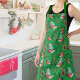 Feierliche Schürze macht Weihnachtskochen umso lustiger! Das Muster zeigt rote Bullfinchvögel mit Kiefernzapfen und immergrünen Ästen auf grünem Hintergrund.