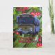 Foto eines Schulbusses, umgeben von Heiligen. Herzlichen Glückwunsch zum Heiligen Tag!