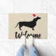 WeihnachtsDackel, die eine Weihnachtsmannmütze u. das Wort "Willkommen" trägt. Diese Fußmatte würde auch ein großes Geschenk für eben weds oder neue Zuhauseinhaber machen!