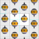 Muster auf der Grundlage von Weihnachtsbaumdekorationen, lila und gelb gefärbt. Dieses Design kommt auch in anderen Farbvarianten, einige mit einer mehr und weniger saisonalen Touch.