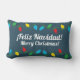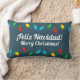 Ein lustiges Weihnachtskissendesign in Spanisch und Englisch. Es heißt "Kostüm Feliz navidad!" und "Frohe Weihnachten." Das Design ist sehr festlich mit Weihnachtsbeleuchtung.