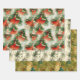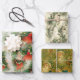 Drei schöne Vintage Designs Weihnachtsverpackungspapier. Jedes der 3 Blätter hat ein eigenes Design. Das erste Design ist ein klassisches, rosarotes kleines Mädchen in einem roten Kleid vor einem dekorierten Baum. Das zweite Design ist ein süßer Pastellengel mit einem Tannenarm in der einen Hand und einer Glocke in der anderen. Das dritte Design ist ein Vintager Weihnachtsmann in einem grünen Muster mit einem Rentier in der Nähe. Alle drei Blätter haben nahtlose, sich wiederholende Bilder.