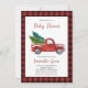 Feiern Sie die Freude einer neuen Ankunft mit unserer Weihnachtsdusche Einladung! Das karierte Design ist in Rot und Schwarz gehalten. Ideal für eine gemütliche Babydusche zum Thema Urlaub. Diese Einladung zeigt einen roten Weihnachtswagen mit festlichem Baum und schafft ein warmes, rustikales Urlaubsatmotiv. Ideal für diejenigen, die eine Mischung aus Country-Chic und Weihnachts-Magie Liebe! BBS240