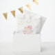 Die "Santa Baby" Duschtüte hat ein festliches, süßes Design, mit einem Baby in einer rosa Weihnachtsmannmütze mit weichen Wolken und Sternen. Es verwendet spielerische Rote Schrift- und Pastelltöne und schafft so ein gemütliches Urlaubsatmotiv, das perfekt für eine Babydusche im Winter geeignet ist.