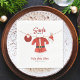 Weihnachts Baby Dusche Thema mit Baby santa Anzug Kleid auf Wäscheleine mit Weihnachtsmannmütze und rotem Bib.