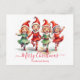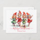 Niedlich tanzende Weihnachtselfen Weihnachtskarte. Personalisieren mit Fotos und Familiennamen.