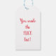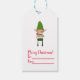 Weihnachts-Elfen-Geschenk-Tag-Design hat eine niedliche Elf auf der Vorderseite mit den Worten "Frohe Weihnachten!" unten. Im Folgenden werden zwei Zeilen angezeigt, um zu schreiben, von wem das Geschenk kommt und von wem es stammt. Zurück zeigt die Worte: "Du hast die NICE-Liste gemacht!" Elfen sind grün gekleidet, Worte sind rot. Konzipiert, um mit der Weihnachtselfen Geschenkpackung zu koordinieren.