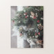 Charmantes Puzzle aus einem schönen Weihnachtskranz. Familienspass für den Urlaub.