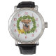 Uhr, Vintage Männeruhr mit schwarzem Lederarmband