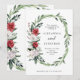 Diese schlichte und elegante Hochzeitseinladung besticht durch einen stilvollen, wasserfarbenen Kranz, der aus modernem Grün und rot-weißen Weihnachtsliedern auf weißem Hintergrund besteht.