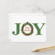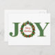 Mit dieser wunderschön gestalteten Weihnachtspostkarte, die das Wort "JOY" mit einem festlichen Kranz und einer "Fröhlichen Weihnachtsbotschaft" in der Mitte schmückt, können Sie den Urlaubssgeist entfalten. Diese Postkarte ist perfekt für den Empfang von warmen Feiertagsgruß an Familie und Freunde. Sie verkörpert das Wesen der Weihnachtsfreude und -feier. Die elegante grüne Schrift kombiniert mit dem klassischen Kranz schafft einen zeitlosen Look, der jedem, der sie empfängt, Beifall bringt. Die Postkarte ist ideal für persönliche Feiertagsgruß, saisonale Dekoration oder als besonderer Sake geeignet und verleiht jedem Ambiente eine Touch klassischer Weihnachtsmagie. Feiern Sie die Saison mit Freude und teilen Sie dieses schöne Urlaubsdesign mit Lieben in der Nähe und weit.