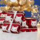Ungerade mit Augen, ein blaues Auge und ein goldenes Auge, weiße Kätzchen mit Weihnachtsfarben und -dekorationen Katzenliebhaber Weihnachtsgeburtspapier