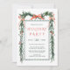 Diese elegante Feier-Einladung besticht durch eine Aquarellgarage (Rahmen), die mit heiligen Beeren und zauberhaften Bandbögen besticht.