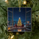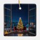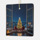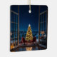 Ein wunderschön dekorierter Weihnachtsbaum steht stolz vor offenen französischen Türen und bietet einen atemberaubenden Blick auf eine schneebedeckte Landschaft unter einem Sternenhimmel. Zwei gemütliche Sessel flankieren den Baum und laden zu ruhiger Betrachtung und festlichem Beifall ein. Das warme Licht der Weihnachtsbeleuchtung und die flackernde Kerze schaffen eine Atmosphäre der Ruhe und der Ruhe.