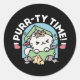 Weihnachtsfeier mit Purr-ty-Time Cat Runder Aufkleber