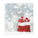 Das Design zeigt ein Foto eines Sackes voller verpackter Geschenke vor einem blauen Hintergrund.
