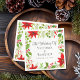 Die klassische Weihnachtsserviette in Rot und Grün ist mit traditionellen Poinsettia-Blume, Heiligenbeeren und Grünpflanzen gestaltet. Festliche und helle Tischdekoration für eine Hochzeitsfeier mit elegantem Drehbuch.