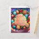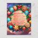 Weihnachtskartentafel: Die kreisförmige Form des Kranzes ist ein Symbol des ewigen Lebens. In einem religiösen Licht repräsentiert es den Tod und die Wiedergeburt Jesu, also sein ewiges Leben. Traditionell hängt ein Kranz an der Haustür, und es ist während der Weihnachtsferien, dass wir am ehesten einen dort zeigen.