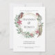Weihnachts Hochzeit thematische Einladung mit Aquarellvögeln und festlichem Blattwerk.
