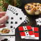 Weihnachten Weihnachten Anzug Moderne Glitzer Gürtelgürtel Playing Cards mit einem roten Santa Claus Anzug in Rot und Weiß mit schwarzen Knöpfen und einem goldenen Glitzer Schnalle. Personalisiert mit Ihrem Namen unten, indem Sie den Text in der angegebenen Textbox bearbeiten. Entworfen von ©Evco Studio www.zazzle.com/store/evcostudio