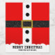 Weihnachten Weihnachtsmann Anzug Moderner Glitzer Gürtel Weinflaschen Labels mit einem roten Santa Claus Anzug in Rot und Weiß mit schwarzen Knöpfen und einem goldenen Glitzer Schnalle. Personalisiert mit Ihrem Text "Frohe Weihnachten aus (Name)" in der Textbox angegeben. Entworfen von ©Evco Studio www.zazzle.com/store/evcostudio