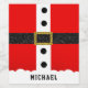 Weihnachten Weihnachtsmann Anzug Moderner Glitzer Gürtel Weinflaschen Labels mit einem roten Santa Claus Anzug in Rot und Weiß mit schwarzen Knöpfen und einem goldenen Glitzer Schnalle. Personalisiert mit Ihrem Namen unten, indem Sie den Text in der angegebenen Textbox bearbeiten. Entworfen von ©Evco Studio www.zazzle.com/store/evcostudio