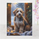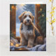 Eine herzliche Urlaubsszene mit einem Hund, der friedlich neben einem Fenster sitzt, umgeben von leuchtenden Weihnachtslichtern. Dieses gemütliche und festliche Design erweckt den Geist der Saison und verleiht jedem Raum Wärme und Charme. Ideal für Hundefreunde und für Liebhaber der Dekoration.