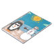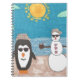 Ein Schneemann und ein Pinguin nehmen einen Urlaub am Strand.