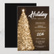 Elegante Weihnachten / Open House / Dinner Party Einladung Vorlage mit modernen Weihnachtsbaum in Gold. Beeindrucken Sie Ihre Freunde mit diesem raffinierten und eleganten Einladungs-Design. Vollständig anpassbar!