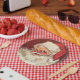 Niedlicher Weihnachtsmann mit Kirschrot-Lippen, rosafarbenen Wangen und flauschigem weißem Bart. Perfekte Teller für Ihren Weihnachtsurlaub.